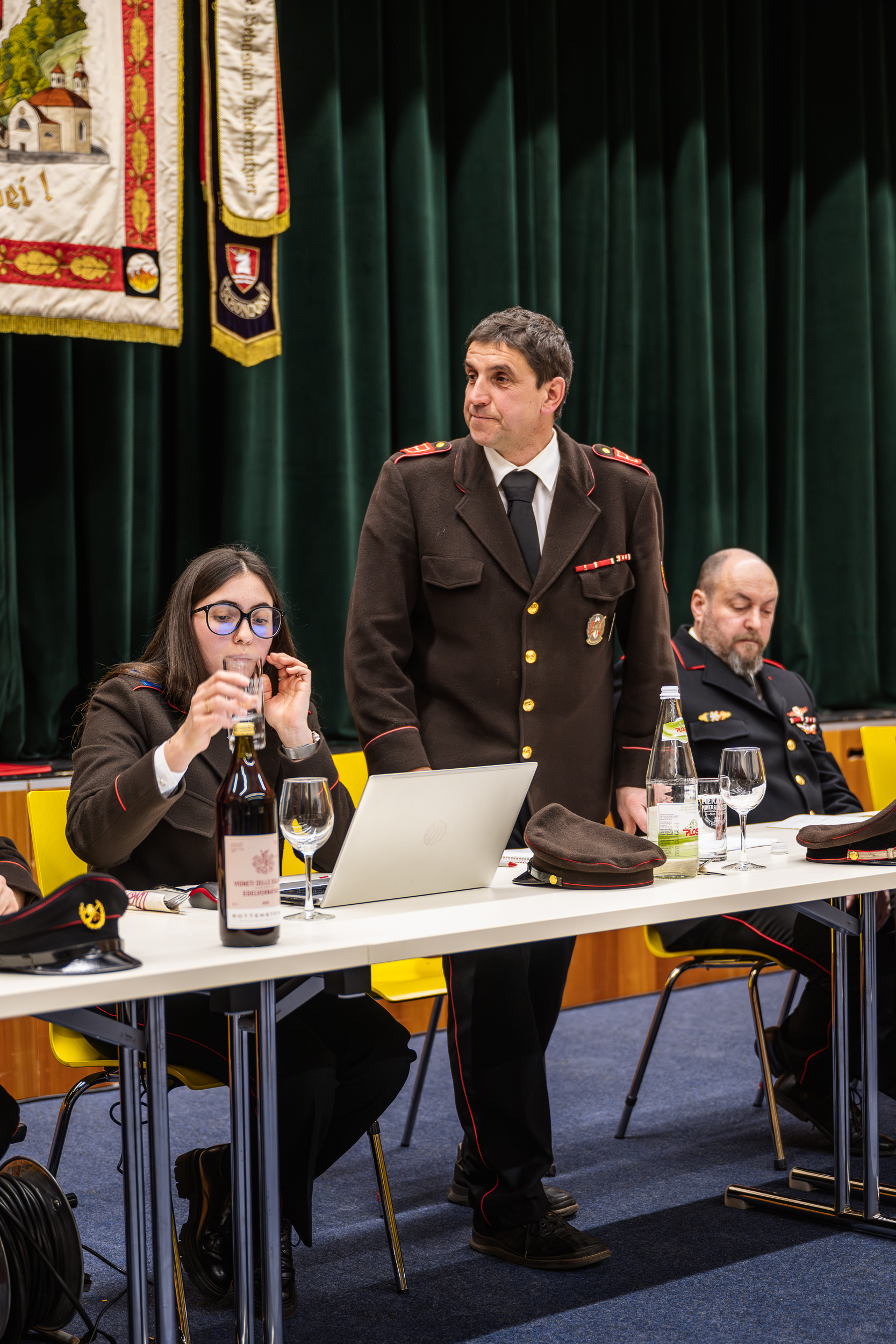 Im Tätigkeitsbericht informierte der Kommandant über den aktuellen Mitgliederstand: 86 aktive Feuerwehrleute (81 Männer, fünf Frauen), 23 Mitglieder der Jugendfeuerwehr, zwölf Ehrenmitglieder sowie ein Fördermitglied. Im Jahr 2025 wurden 43 überwiegend technische Einsätze mit insgesamt 990 Mannstunden geleistet. Dazu kamen 216 Übungen mit 3.780 Stunden sowie zahlreiche weitere Dienste. Die Beteiligung an den Vollproben lag konstant bei rund 50 bis 60 Mitgliedern. Hervorgehoben wurden die Gemeinschaftsübung mit der Feuerwehr Brixen sowie eine Waldbrandsimulationsübung. Insgesamt wurden 31 Lehrgänge besucht.